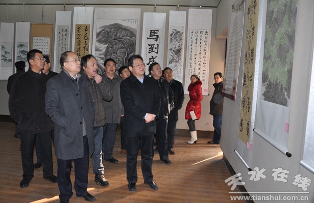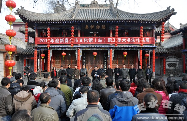 ▲2月7日,2014年迎新春全市文化館(站)職工美術(shù)書法作品展在天水市群藝館開展。(原文鏈接:全市文化館職工美術(shù)書法作品展在市群藝館開展)