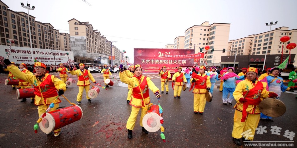 ▲2014年2月11日(農(nóng)歷正月十二),2014馬年天水市秦州區(qū)春節(jié)民間藝術(shù)匯演在秦州區(qū)主街道隆重舉行,來自秦州區(qū)各鄉(xiāng)鎮(zhèn)、社區(qū)的舞龍、舞獅、扭秧歌、武術(shù)、夾板舞等具有當?shù)靥厣拿耖g文藝表演大放異彩。當日,有上萬市民上街觀看社火表演。 (原文鏈接:秦州大地正月十二耍社火)