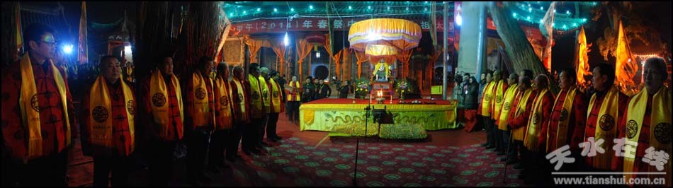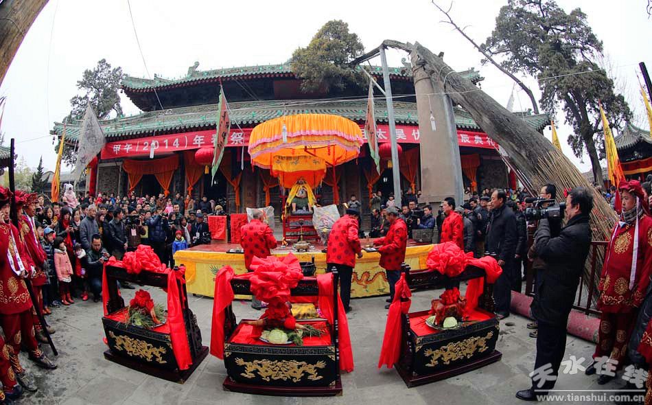 ▲2月12日(正月十三),備受全市人民關(guān)注的春節(jié)民間民俗活動,甲午(2014)年伏羲廟春祭中華人文始祖太昊伏羲氏活動,在伏羲城拉開大幕。春祭伏羲活動由天水市博物館、天水市伏羲廟管理局、天水市民間祭祀伏羲協(xié)會、上元會承辦。 (原文鏈接:甲午(2014)年伏羲廟春祭太昊伏羲氏活動拉開大幕)