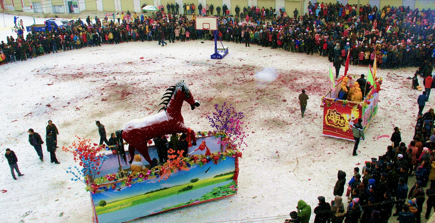 ▲2月8日,農(nóng)歷正月初九日是天水市麥積區(qū)麥積鎮(zhèn)街子古鎮(zhèn)一年一度的“上九”廟會,來自楊河村、宏羅村、南家山村等18支社火隊進行了匯演,活動吸引了周邊約4萬人前來觀看。(原文鏈接:街子古鎮(zhèn)“上九”耍社火)