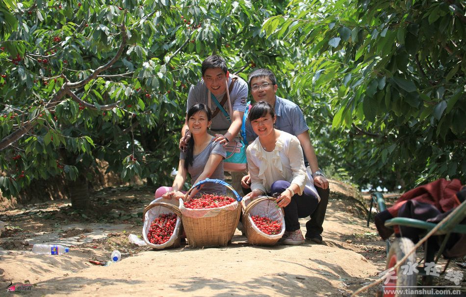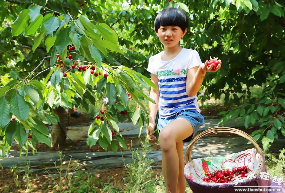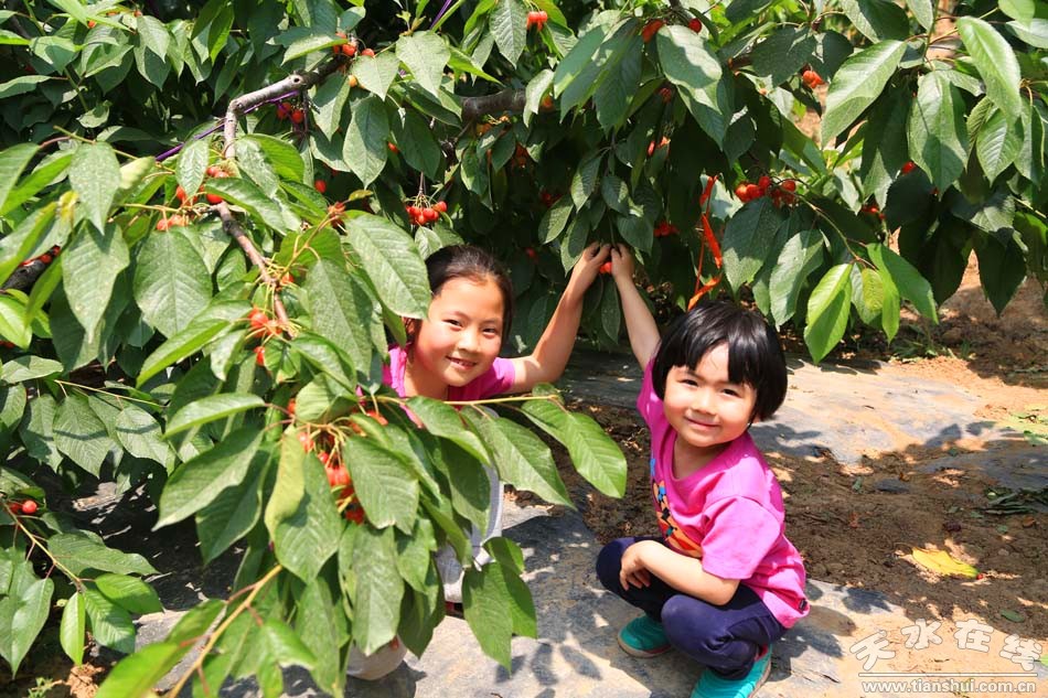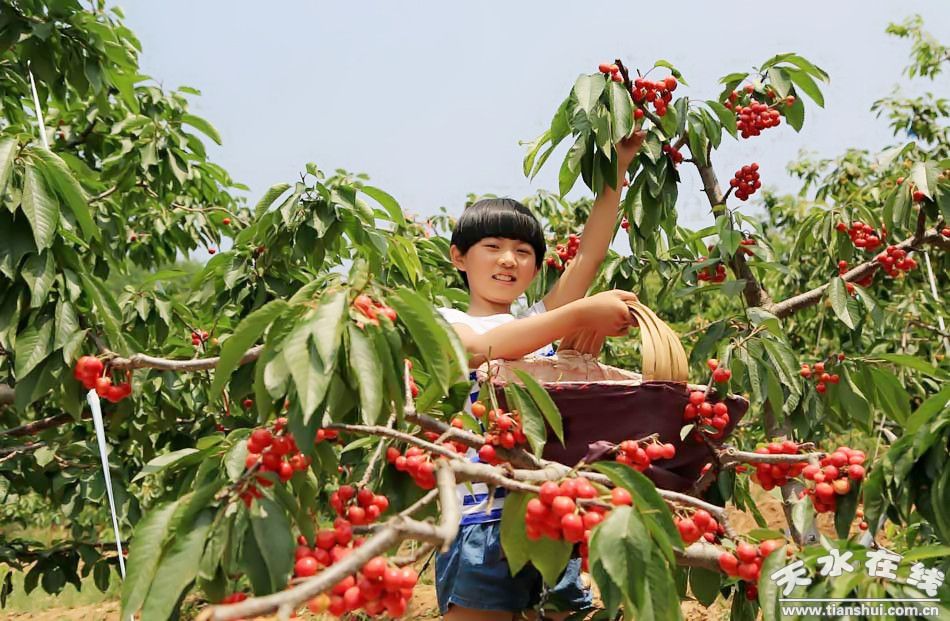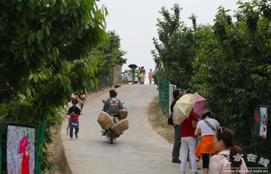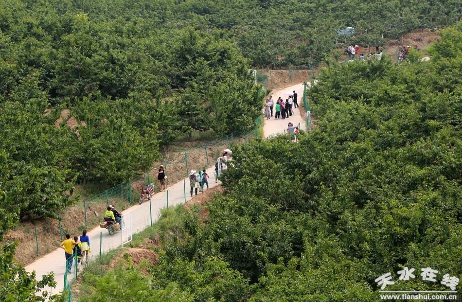 (煙鋪櫻桃園游人如織 天水在線攝于6月1日)