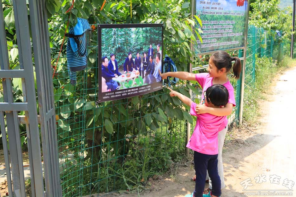 (圖為小朋友在觀看天水在線在煙鋪櫻桃園里舉辦的攝影作品展 天水在線攝于6月1日)