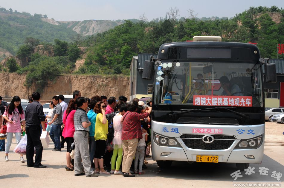 (煙鋪大櫻桃基地觀光車深受市民歡迎 天水在線攝于6月1日)