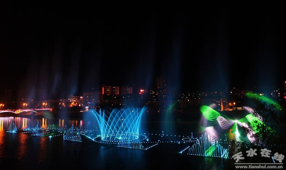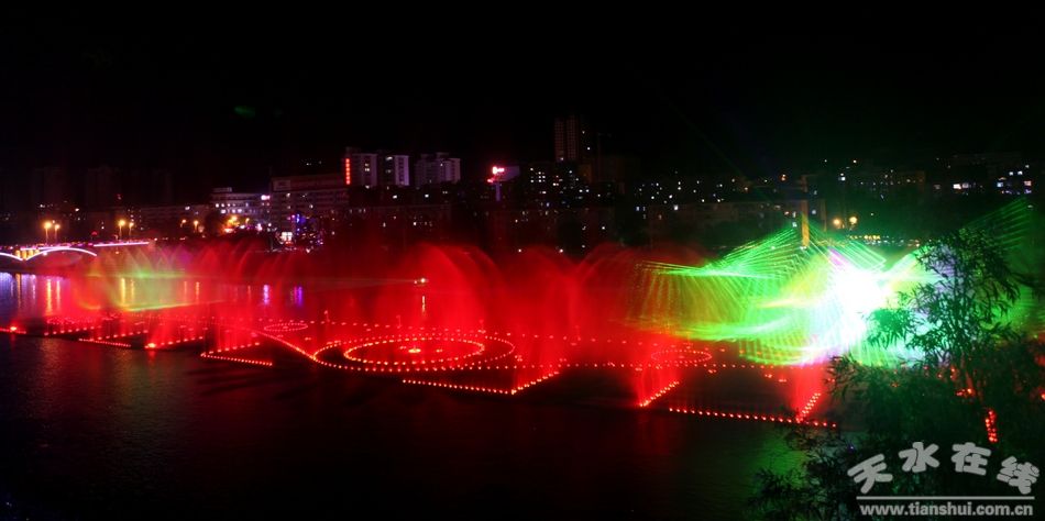 6月17日晚,藉河風情立體噴泉精彩上演。據(jù)悉,藉河風情線噴泉項目是今年市、區(qū)兩級政府確定的城市重點建設(shè)項目之一,由秦州區(qū)住建局具體負責實施。噴泉項目位于藉河風情線3號橡膠壩至4號橡膠壩段水體內(nèi),噴泉水源利用天水湖橡膠壩內(nèi)的蓄水,對水體無污染。整個項目包括噴泉、觀景平臺和浮筒筏低水池建設(shè)等,其中噴泉最大長度為160米,最大寬度為30米;觀景平臺位于河堤南岸。藉河風情線噴泉是集聲、光、水、電、圖像為一體的高雅文化藝術(shù),將多種自然景觀和天水的歷史文化有機融合,通過水幕展現(xiàn)在市民面前。