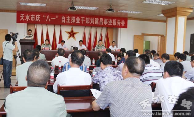 在“八一”建軍節(jié)來臨之際,天水軍分區(qū)、天水預(yù)備役旅和天水市人社局聯(lián)合舉辦了天水市慶“八一”自主擇業(yè)干部劉建昌事跡報告會,旨在激勵全市自主擇業(yè)軍轉(zhuǎn)干部和各位現(xiàn)役軍人,在今后的工作中,學習先進,趕超先進,能夠退伍不褪色,不管在哪個行業(yè),發(fā)揮不等不靠,敢于拼搏精神。