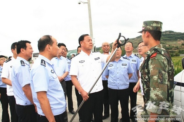 觀摩檢查期間,黃金奎同志帶領(lǐng)市公安局在家局領(lǐng)導(dǎo),相關(guān)部門負(fù)責(zé)人和和各分、縣公安局局長,先后深入甘谷、武山、清水、張家川、秦安、秦州和麥積分局的治安卡點(diǎn)、派出所、指揮中心、看守所和反恐防暴大隊(duì)等40余個觀摩點(diǎn),通過實(shí)地觀摩、聽取介紹、現(xiàn)場了解、查看臺賬等方式,對每個觀摩點(diǎn)上半年重點(diǎn)工作開展情況進(jìn)行了觀摩檢查。通過現(xiàn)場觀摩檢查和對照省公安廳半年工作通報(bào)來看,今年上半年全市各級公安機(jī)關(guān)在市委、政府和上級公安機(jī)關(guān)的正確領(lǐng)導(dǎo)下,扎實(shí)履行公安機(jī)關(guān)工作職責(zé),有力維護(hù)了全市社會治安持續(xù)穩(wěn)定,總體呈現(xiàn)良好勢頭,主要表現(xiàn)在四個方面:一是各級黨委、政府普遍高度重視而且非常支持公安工作;二是全市社會政治大局穩(wěn)定,治安秩序良好,實(shí)現(xiàn)了無重大(案)事件發(fā)生的目標(biāo);三是反恐防暴工作普遍重視,并且常態(tài)化;四是教育訓(xùn)練工作搞的扎實(shí)有效。全市公安機(jī)關(guān)重點(diǎn)開展了“治亂治堵”、黨的群眾路線教育實(shí)踐活動和反恐防暴應(yīng)急處突演練,圓滿完成2014年公祭中華人文始祖伏羲大典和國際自行車賽天水段的安全保衛(wèi)工作任務(wù),各項(xiàng)公安工作都取得顯著成績。