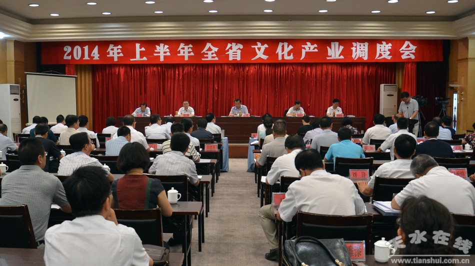 7月30日,2014年上半年全省文化產(chǎn)業(yè)調(diào)度會(huì)在天水召開。省委常委、省委宣傳部部長(zhǎng)連輯出席會(huì)議并講話,他強(qiáng)調(diào),要深入貫徹落實(shí)省委十二屆八次全委(擴(kuò)大)會(huì)議精神,充分利用優(yōu)勢(shì)資源,認(rèn)真抓好文化與旅游、文化和金融的深度融合。