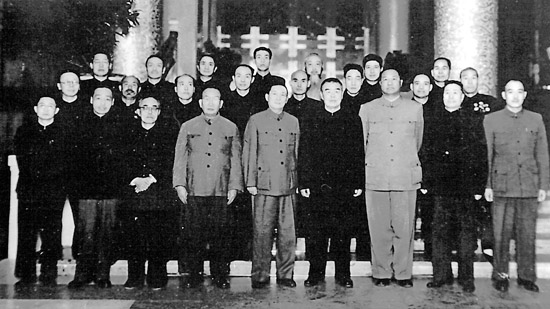 1954年9月,第一屆全國(guó)人民代表大會(huì)在北京召開(kāi),甘肅代表團(tuán)全體代表在北京飯店合影。前排右四為團(tuán)長(zhǎng)鄧寶珊。