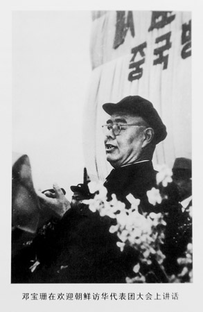 上世紀(jì)50年代初,鄧寶珊在歡迎朝鮮訪華代表團(tuán)會(huì)議上講話。