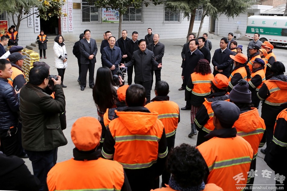 在秦州區(qū)環(huán)衛(wèi)處看望慰問環(huán)衛(wèi)工人時(shí),楊維俊與一線環(huán)衛(wèi)工人們親切握手,對(duì)他們辛勤的工作表示感謝。楊維俊說,環(huán)衛(wèi)工人是“城市的美容師”,起得早、工作忙、下班晚,為城市建設(shè)付出了辛勤汗水,市委、市政府及全市人民對(duì)環(huán)衛(wèi)工人為城市建設(shè)做出的貢獻(xiàn)表示感謝。希望大家在過好春節(jié)的同時(shí),一如既往地努力工作,用勤勞的雙手為建設(shè)美麗天水貢獻(xiàn)力量。同時(shí),希望全社會(huì)尊重環(huán)衛(wèi)工人勞動(dòng)成果,關(guān)心、支持、參與環(huán)衛(wèi)事業(yè),不斷提高城市文明程度,營造良好的市容環(huán)境。