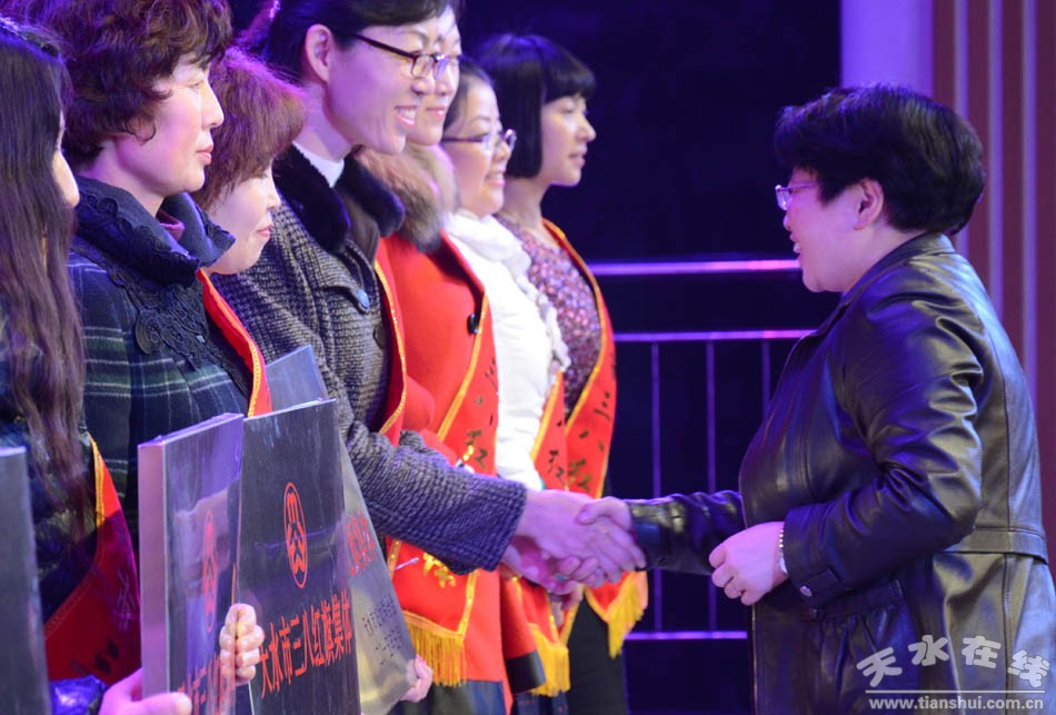 (天水市委常委、紀(jì)委書記李美華為“天水市三八紅旗集體”頒獎)