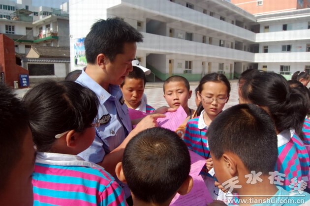交警給秦安縣興國四小學(xué)生宣講交通安全知識