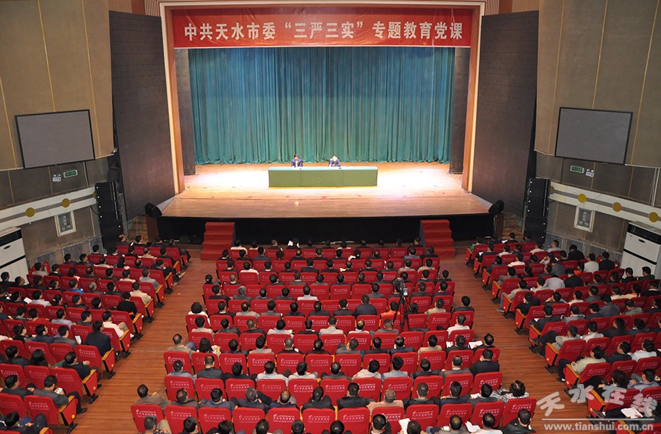 5月12日上午,天水市委舉辦“三嚴(yán)三實(shí)”專題教育黨課,正式啟動(dòng)全市縣處級(jí)以上領(lǐng)導(dǎo)干部“三嚴(yán)三實(shí)”專題教育。市委書記王銳以講黨課的形式,對(duì)貫徹落實(shí)習(xí)近平總書記提出的“三嚴(yán)三實(shí)”要求作專題輔導(dǎo),并對(duì)全市開展專題教育進(jìn)行動(dòng)員部署。他強(qiáng)調(diào),要認(rèn)真學(xué)習(xí)習(xí)近平總書記系列重要講話精神,深入落實(shí)中央、省委決策部署,以飽滿的熱情、務(wù)實(shí)的態(tài)度、有力的舉措抓好“三嚴(yán)三實(shí)”專題教育,引導(dǎo)廣大黨員干部特別是領(lǐng)導(dǎo)干部準(zhǔn)確把握“三嚴(yán)三實(shí)”的科學(xué)內(nèi)涵和現(xiàn)實(shí)意義,自覺(jué)踐行“三嚴(yán)三實(shí)”,努力形成“三嚴(yán)三實(shí)”的新風(fēng)正氣,為全面建成小康社會(huì)、建設(shè)幸福美好新天水提供堅(jiān)強(qiáng)保證。