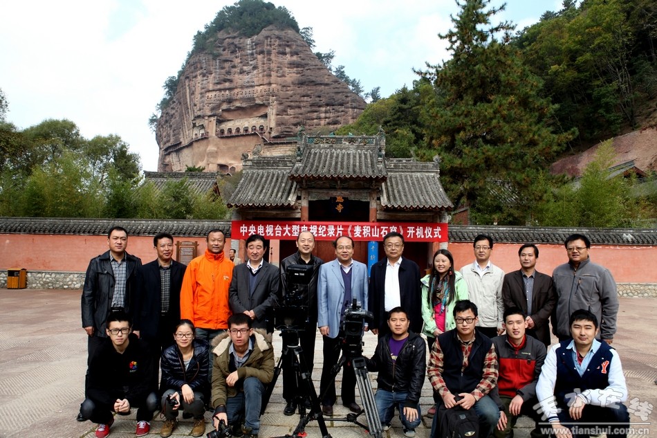 。2013年10月24日上午,中央電視臺攝制組蒞臨我市,在麥積山廣場隆重舉行五集大型高清電視紀錄片《麥積山石窟》開機儀式,甘肅省委外宣辦、省政府新聞辦主任梁和平宣布開機,央視《麥積山石窟》制片人郝國慶和天水市委常委、宣傳部長彭鴻嘉共同揭機,郝國慶和《麥積山石窟》總導(dǎo)演韋燕燕分別介紹了攝制組人員及電視片拍攝情況,央視攝制組全體成員、市區(qū)有關(guān)部門單位負責人、工作人員200多人參加開機儀式。儀式由天水市副市長霍衛(wèi)平主持。 )