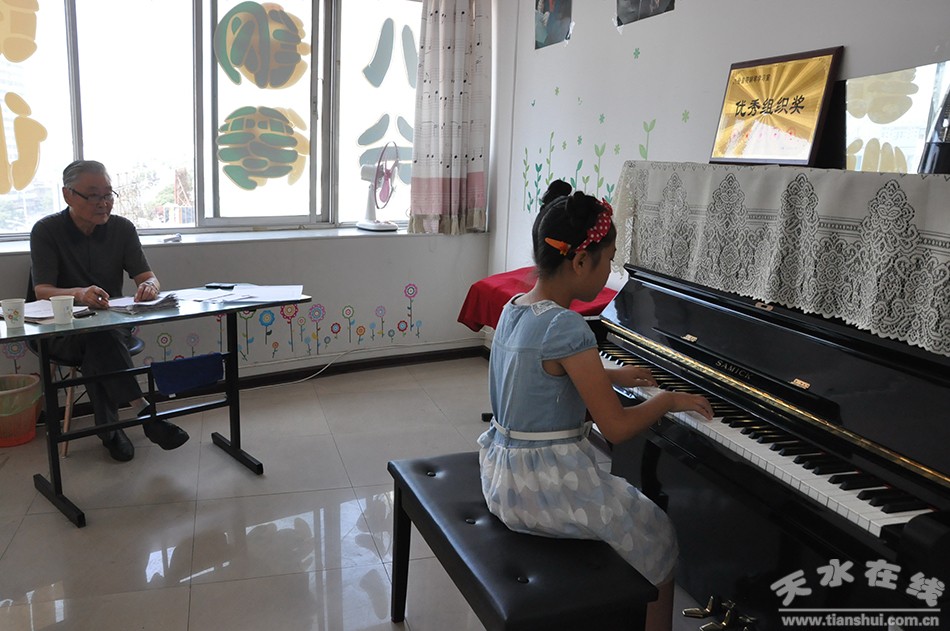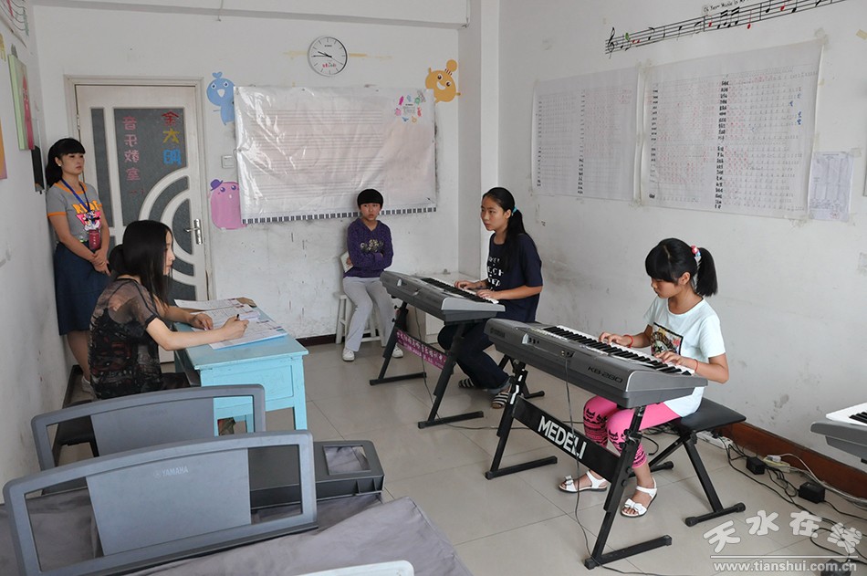 8月21日,2015暑假音樂藝術(shù)考級在天水市紅領(lǐng)巾藝術(shù)團開考,全市有近千人報名參加聲樂、鋼琴、電子琴、雙排鍵、二胡、琵琶、長笛、小提琴、大提琴、楊琴、古箏、葫蘆斯、薩克斯、架子鼓、古典吉他、單簧管等多項藝術(shù)門類的等級考試。