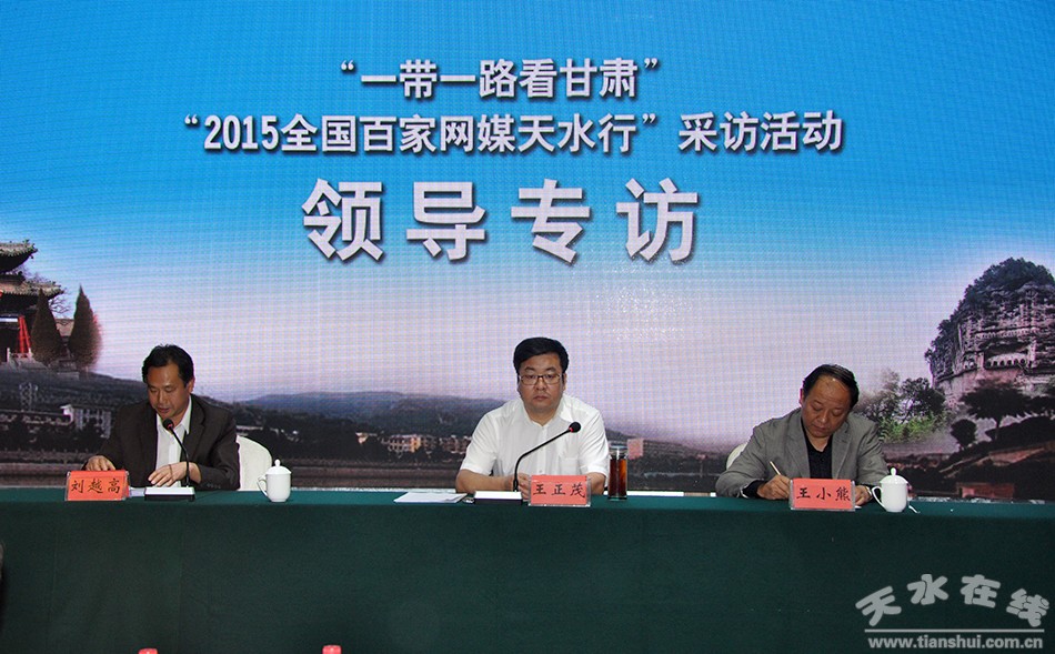 中國甘肅網(wǎng)9月22日天水訊 (本網(wǎng)記者 狄東陽 文/圖) 22日上午,“一帶一路看甘肅”2015百家網(wǎng)絡(luò)天水行領(lǐng)導(dǎo)專訪在天水進(jìn)行,中共天水市委常委、宣傳部長王正茂應(yīng)邀接受專訪,他在專訪上介紹了天水文化和旅游深度融合的相關(guān)情況并回答了網(wǎng)媒記者的提問。