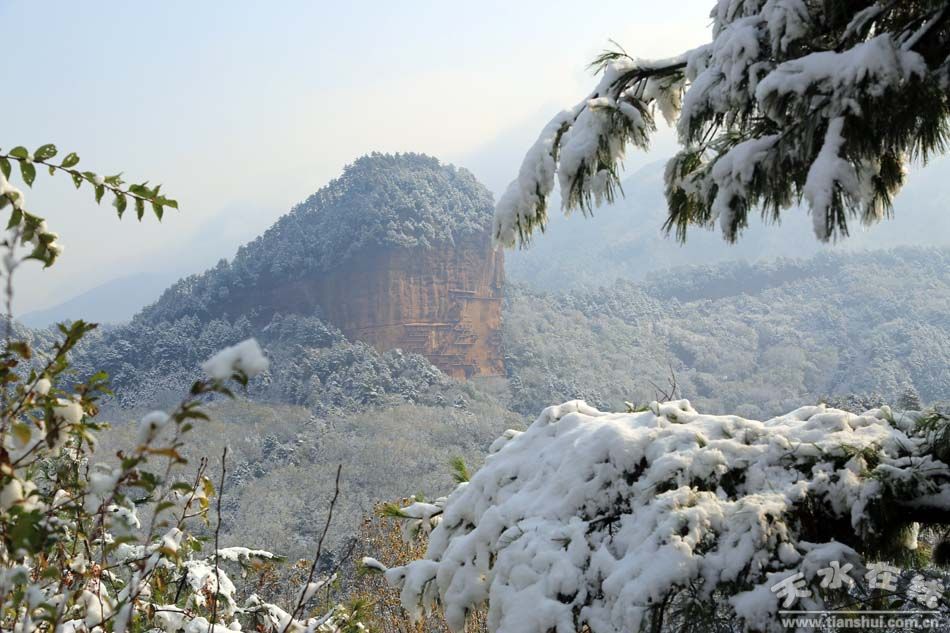 著名畫家梁雄德在麥積山寫生雪景(組圖)