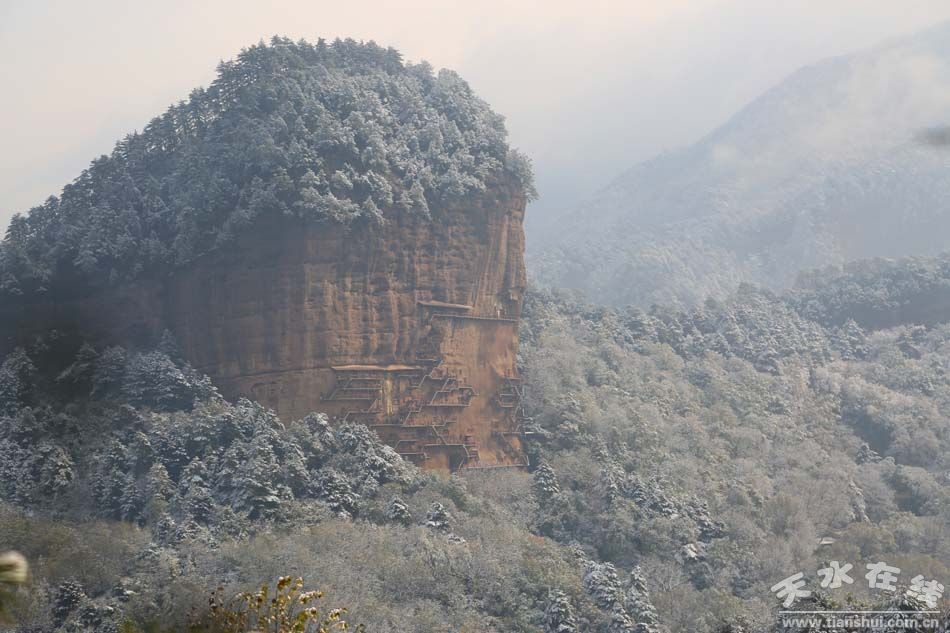 著名畫家梁雄德在麥積山寫生雪景(組圖)