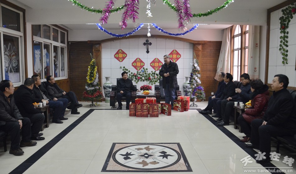 12月23日,天水市委常委、副市長張明泰,市人大常委會副主任黃孝榮,市政協(xié)副主席張克強帶領(lǐng)市委統(tǒng)戰(zhàn)部、市民宗委等相關(guān)部門負責人,來到市天主教堂和基督教堂看望慰問教職人員和信教群眾,并為他們送去了慰問品。