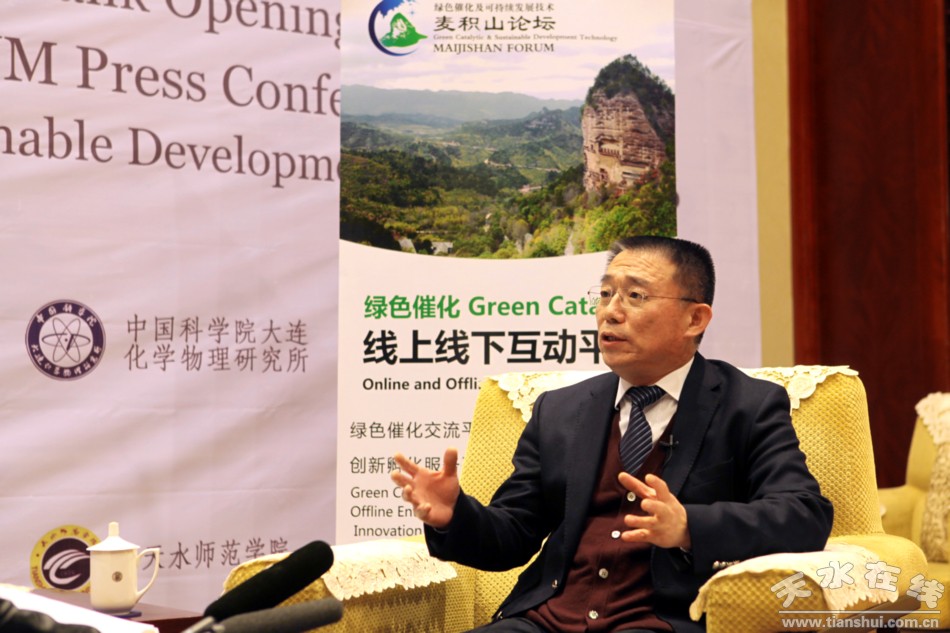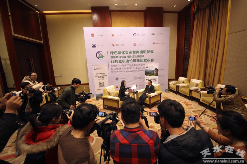 12月24日,綠色催化專(zhuān)家智庫(kù)啟動(dòng)儀式暨2016綠色催化和可持續(xù)發(fā)展技術(shù)麥積山論壇新聞發(fā)布會(huì)在蘭州舉行。記者就相關(guān)問(wèn)題專(zhuān)題采訪(fǎng)了天水市委書(shū)記王銳。