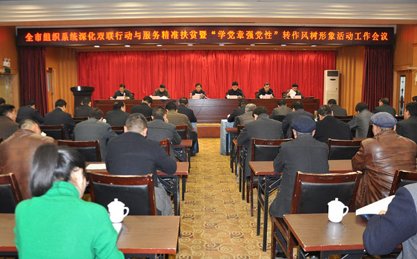 1月7日,全市組織系統(tǒng)深化雙聯(lián)行動與服務精準扶貧暨“學黨章強黨性”轉(zhuǎn)作風樹形象活動工作會議召開。會議傳達學習了全省組織系統(tǒng)深化雙聯(lián)行動與服務精準扶貧交流推進會精神,對全市組織部門更好地履行職責,服務和推進雙聯(lián)行動與精準扶貧、扎實開展“學黨章強黨性”活動進行了安排部署。市委常委、組織部長王光慶出席會議。