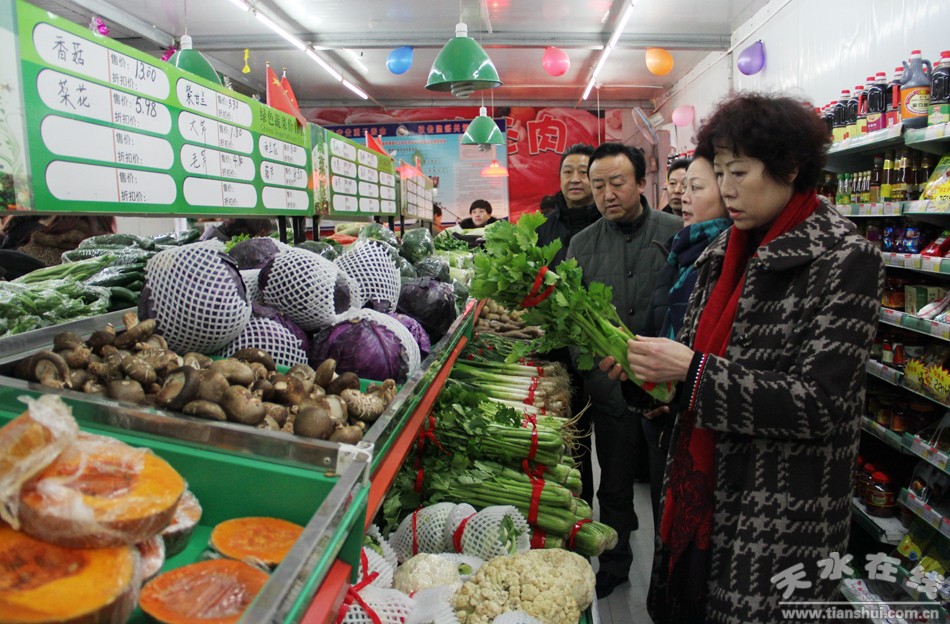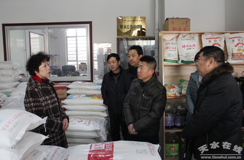 春節(jié)臨近,為切實(shí)做好春節(jié)期間食品安全和保供穩(wěn)市工作,2月2日,天水市副市長溫利平帶領(lǐng)市商務(wù)局、市糧食局、市發(fā)改委等相關(guān)部門負(fù)責(zé)人,就節(jié)前糧油、副食品市場供應(yīng)和蔬菜儲備工作進(jìn)行了檢查。