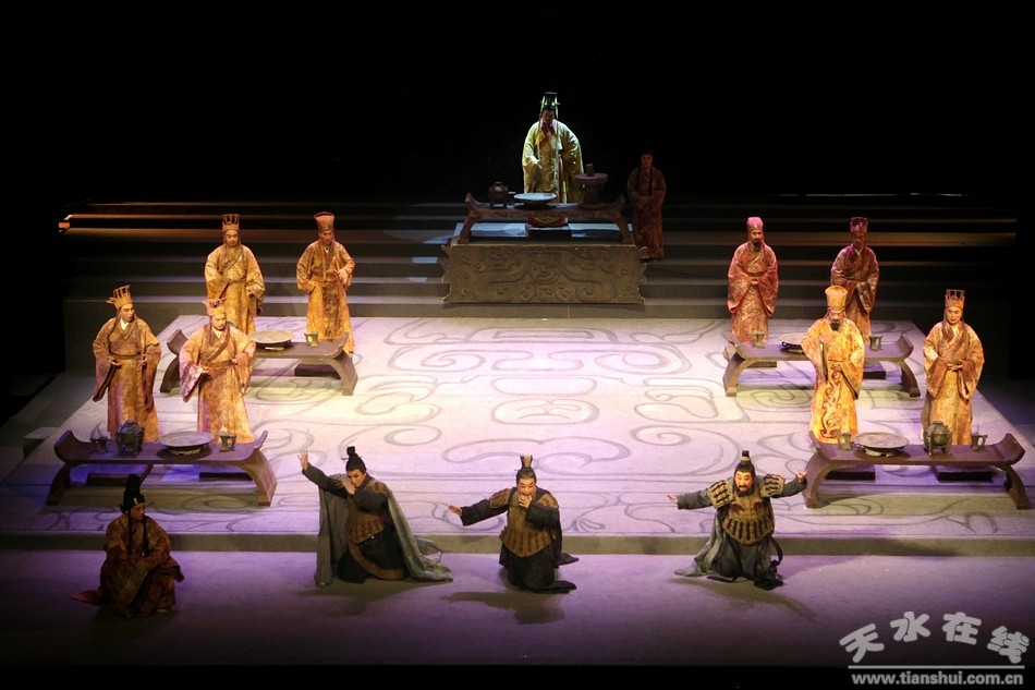2014年,天水市邀請國家著名編劇曹銳、導(dǎo)演韓劍英加盟,以秦國先祖幫助周平王東遷洛邑為背景,以秦襄公、秦文公勵志向東發(fā)展為奮斗目標(biāo),以秦國早期發(fā)展中的內(nèi)憂外患為線索,以民族融合過程中的愛恨情仇為題材,創(chuàng)排了原創(chuàng)歷史秦腔《大秦文公》,《大秦文公》劇情跌宕起伏、場面宏大壯觀、舞美設(shè)計精致,很好的展現(xiàn)了赳赳秦人富國強兵的悲壯歷程,秦國先祖依法治國的戰(zhàn)略思想。具有較強的思想性、藝術(shù)性、觀賞性和宣傳性,是舞臺藝術(shù)精典之作。
