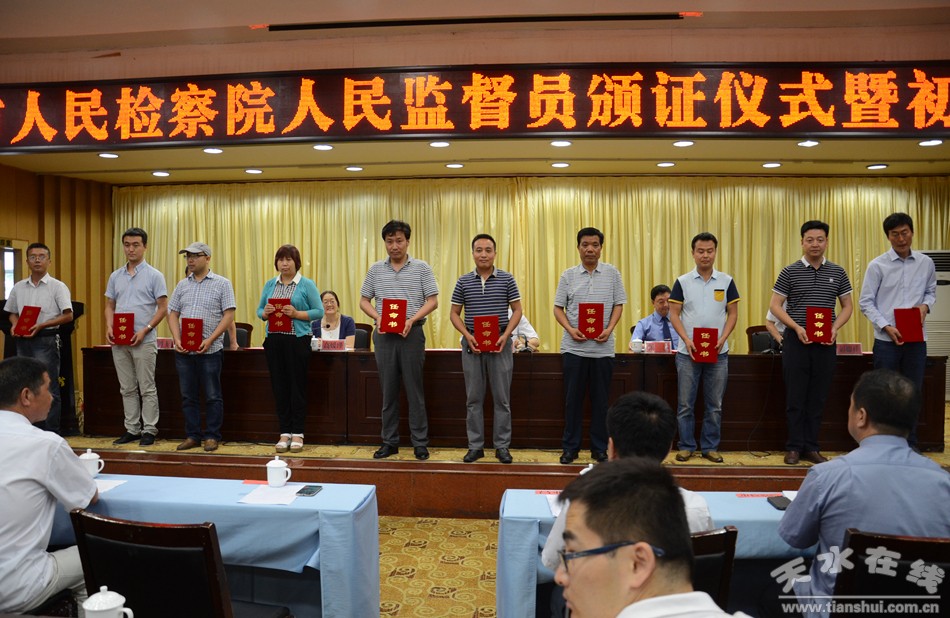 會(huì)議宣讀了《天水市司法局關(guān)于選任萬(wàn)有太等32名同志為天水市人民檢察院人民監(jiān)督員的決定》,并為市人民檢察院人民監(jiān)督員頒發(fā)任命書(shū)。
