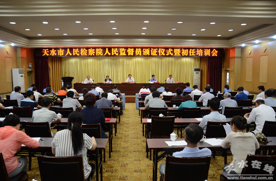 7月13日下午,天水市人民檢察院人民監(jiān)督員頒證儀式暨初任培訓(xùn)會(huì)在天水迎賓館舉行。 市委常委、政法委書(shū)記趙衛(wèi)東,市人民檢察院檢察長(zhǎng)張喜出席會(huì)議。