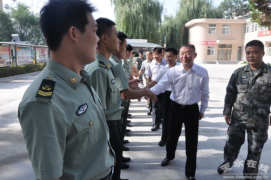 在“八一”建軍節(jié)來臨之際,7月27日上午,天水市委書記王銳帶領(lǐng)市四大組織領(lǐng)導(dǎo)走訪慰問了駐市部隊(duì)官兵,為他們送去慰問品,向他們致以節(jié)日的祝賀和親切的慰問。