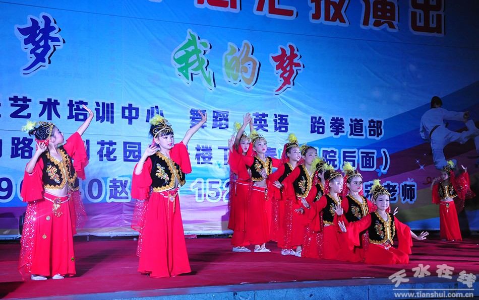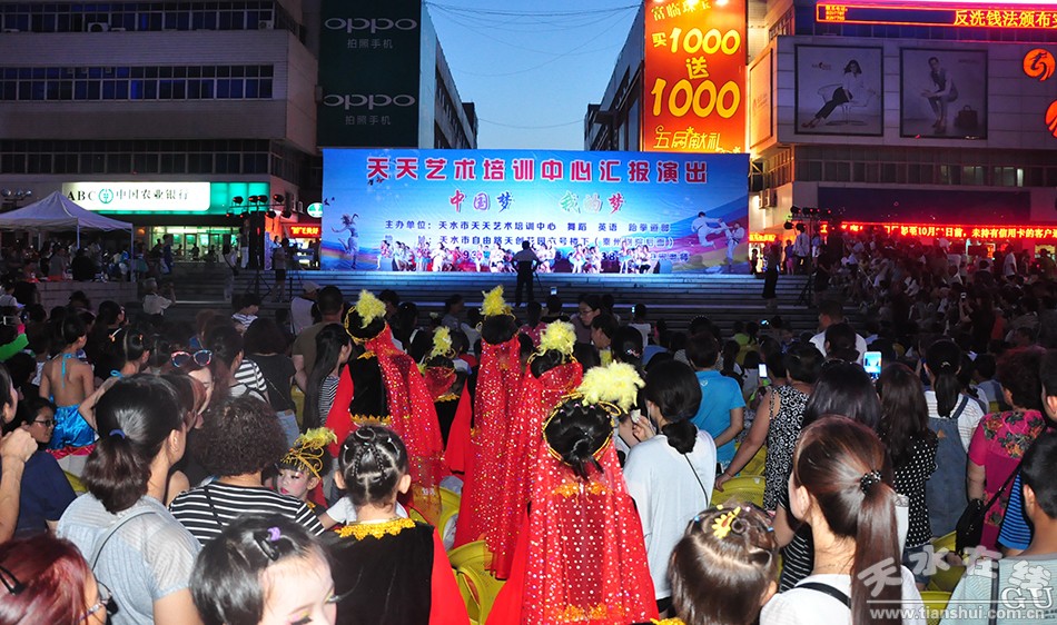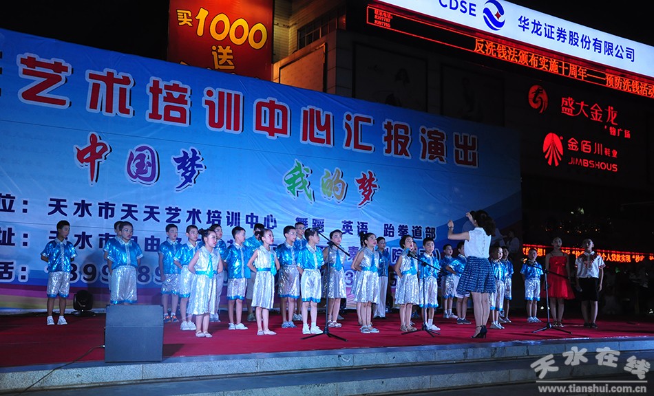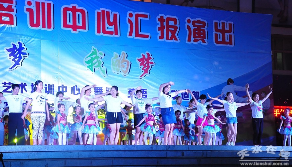 8月16日晚,天天藝術(shù)培訓(xùn)中心在龍城廣場舉行匯報演出,參演師生達一百四十余人。
