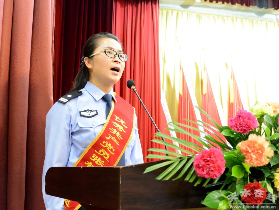 ▲景來莉作題為《忠誠鑄就警魂,奉獻(xiàn)詮釋人生》的宣講