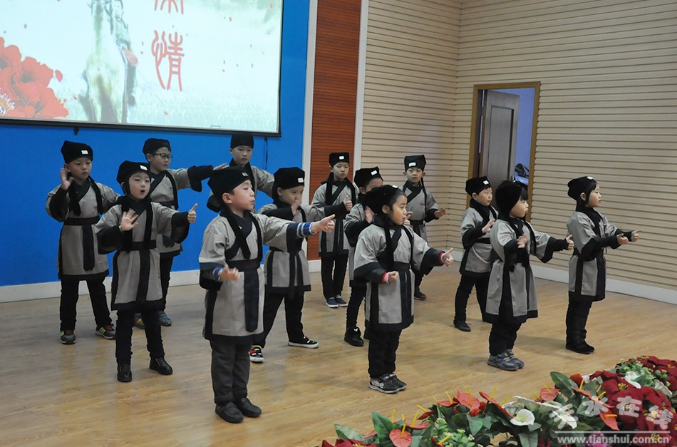 (天水蒙正學堂的孩子們表演《木蘭辭》)