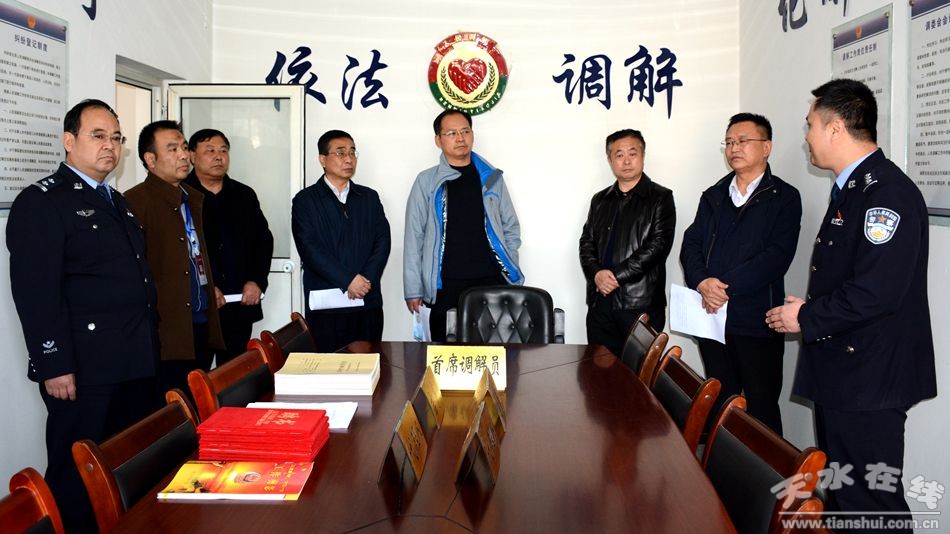 唐志峰對我市綜治維穩(wěn)反邪教執(zhí)法督導依法治市工作給予充分肯定。他指出,天水市各級黨委、政府對政法綜治等工作高度重視,部署周密扎實,基層基礎得到進一步夯實,責任體系不斷完善,齊抓共管的格局初步形成;堅持關口前移,多元化糾紛解決機制進一步健全完善,應急處突能力明顯提升,各項試點、創(chuàng)新工作走在了全省前列,工作亮點紛呈,實現(xiàn)了政法綜治工作與經(jīng)濟社會發(fā)展相互促進。唐志峰要求,要認真學習黨的十八屆六中全會精神,進一步強化“四個意識”,把從嚴治黨的要求貫徹到政法工作的全過程。要按照中央政法委“南昌會議”精神和省委政法委的安排部署,對全年的工作進行再梳理、再總結,對明年的工作進行再研究、再謀劃,切實提高政法工作的水平和實效。要堅持以創(chuàng)新為動力,進一步完善人民調(diào)解、行政調(diào)解、司法調(diào)解“三調(diào)聯(lián)動”的工作機制,爭取在全省創(chuàng)出一條示范之路。要著眼于長治久安、公平正義、人民安居樂業(yè)三大目標,全面推進政法各項工作,進一步夯實基層社會治理基礎,鞏固好、維護好、發(fā)展好基層社會治理成果,全力保障社會和諧穩(wěn)定。