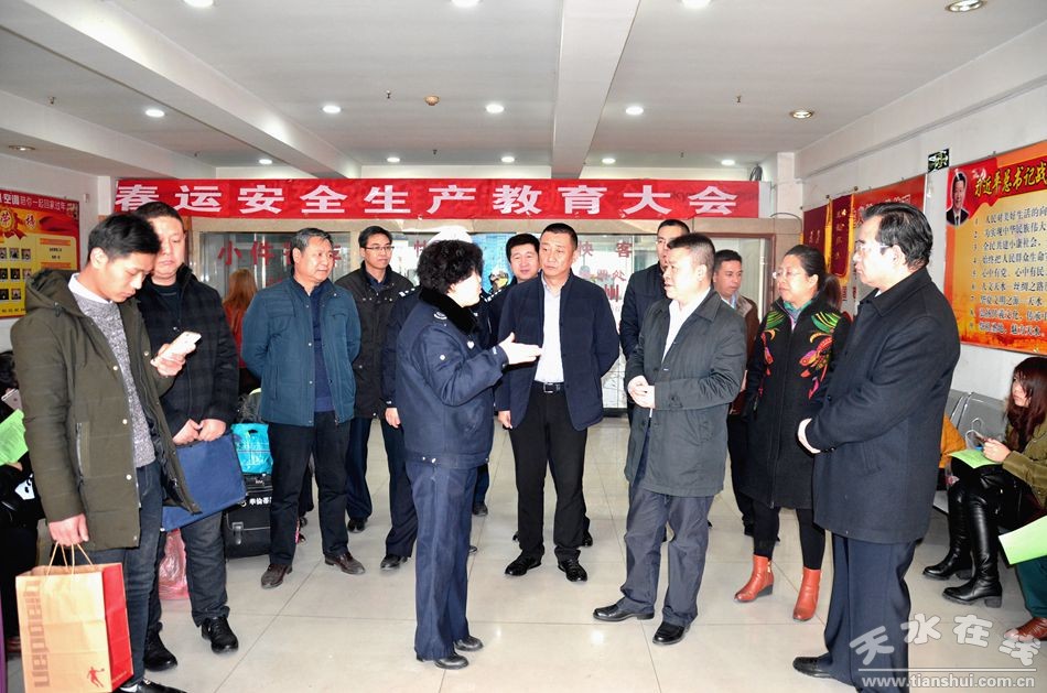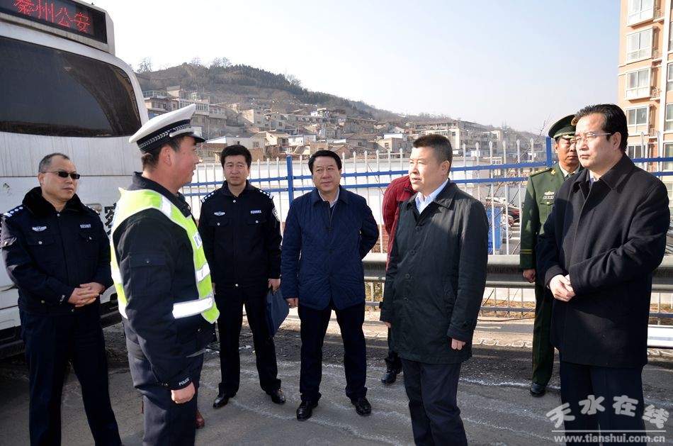 1月22日,天水市副市長郝文杰帶領(lǐng)市安監(jiān)局、市交運(yùn)局、市質(zhì)監(jiān)局、市公安局,市消防支隊等安委會成員單位負(fù)責(zé)人深入我市交通重點路段以及人員密集場所開展節(jié)前安全生產(chǎn)檢查。他要求相關(guān)部門和企業(yè)要落實主體責(zé)任、消除隱患,嚴(yán)防各類安生事故的發(fā)生,確保人民群眾度過一個安全、祥和的新春佳節(jié)。