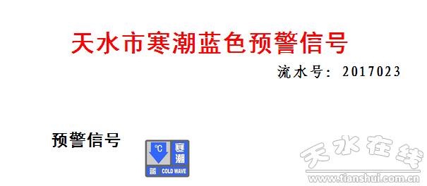 天水市氣象臺(tái)2017年3月23日15時(shí)40分發(fā)布寒潮藍(lán)色預(yù)警信號(hào):