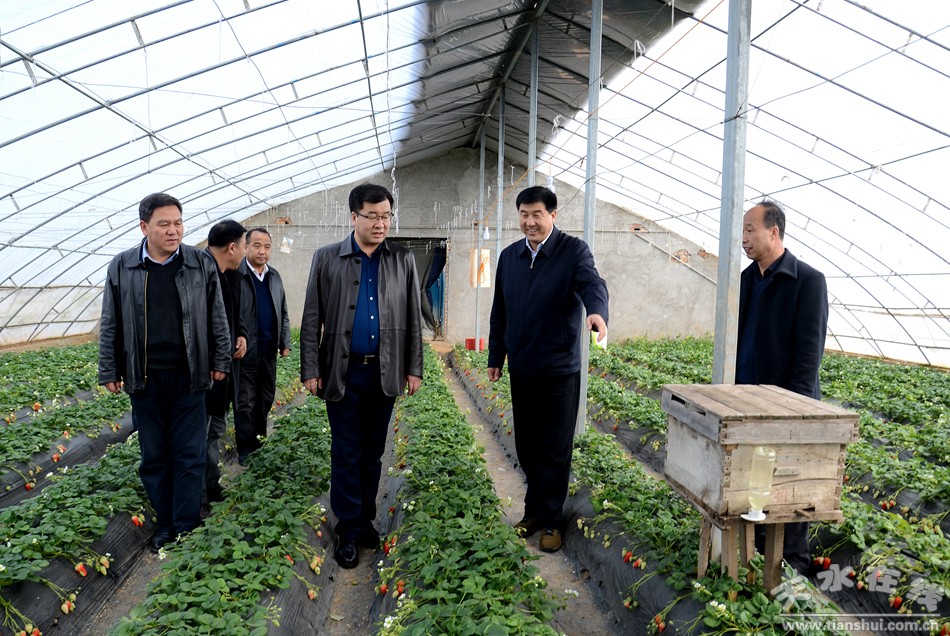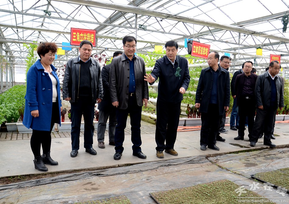 (在清水縣農(nóng)業(yè)科技示范園區(qū)調(diào)研)