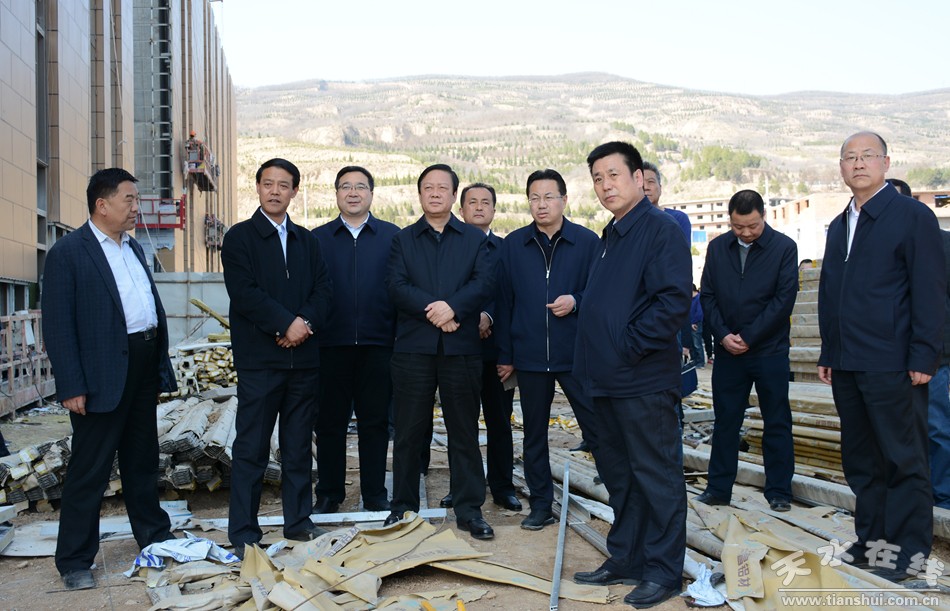 會(huì)前,楊維俊一行來到天水商貿(mào)城會(huì)展中心和廣場等有關(guān)項(xiàng)目建設(shè)工地,就項(xiàng)目建設(shè)、裝修進(jìn)展情況及相關(guān)基礎(chǔ)設(shè)備配套建設(shè)工作進(jìn)行了詳細(xì)察看了解。