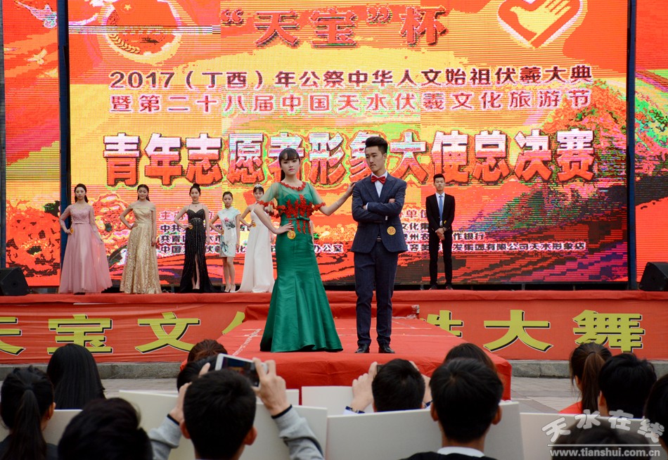 4月8日,2017年公祭人文始祖伏羲大典暨第二十八屆伏羲文化旅游節(jié)青年志愿者形象大使總決賽在秦州區(qū)天河廣場舉行,通過初賽和復(fù)賽精心選拔出來的37名選手經(jīng)過激烈角逐,最終評(píng)選出10名青年志愿者為節(jié)會(huì)形象大使,6名選手分別獲得最佳口才獎(jiǎng)、最佳才藝獎(jiǎng)、最佳智慧獎(jiǎng)、最佳禮儀獎(jiǎng)、最佳風(fēng)尚獎(jiǎng)、最佳氣質(zhì)獎(jiǎng)。之后,我市還將選出360名節(jié)會(huì)青年志愿者,參與2017年節(jié)會(huì)的接站、引導(dǎo)、聯(lián)絡(luò)和服務(wù)工作。