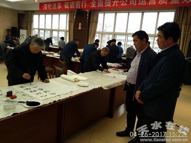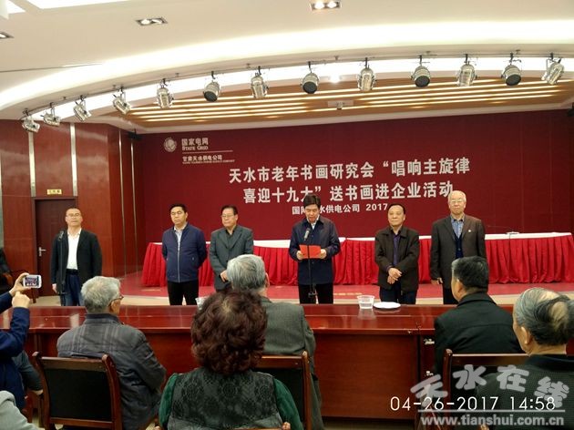 4月26日下午,在全黨全國上下喜迎十九大的重要時期,在五一勞動節(jié)即將到來之際,天水市企業(yè)工委邀請市老年書畫研究會會長王欽錫等26名書畫家來到國網(wǎng)天水供電公司,開展“唱響主旋律,喜迎十九大”送書畫進(jìn)企業(yè)活動。