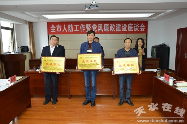 會上,傳達(dá)學(xué)習(xí)了全省人民防空工作暨黨風(fēng)廉政建設(shè)會議精神,通報了2016年全市人民防空建設(shè)目標(biāo)責(zé)任書考核情況,對獲得全市人防建設(shè)目標(biāo)管理考核先進(jìn)單位的甘谷縣、秦安縣、麥積區(qū)人防辦頒發(fā)了獎牌,市人防辦黨組書記、主任馬小龍與辦黨組成員、各縣區(qū)人防辦、機關(guān)各科室層層簽訂了2017年度人民防空建設(shè)目標(biāo)管理責(zé)任書及黨風(fēng)廉政建設(shè)目標(biāo)責(zé)任書。