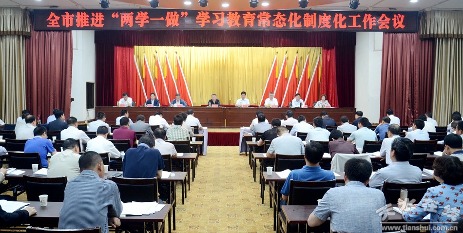 6月7日,天水市委召開(kāi)全市推進(jìn)“兩學(xué)一做”學(xué)習(xí)教育常態(tài)化制度化工作會(huì)議。市委書(shū)記王銳在會(huì)上強(qiáng)調(diào),要深入學(xué)習(xí)貫徹習(xí)近平總書(shū)記關(guān)于推進(jìn)“兩學(xué)一做”學(xué)習(xí)教育常態(tài)化制度化的重要指示精神,全面落實(shí)中央、省委有關(guān)部署要求,提高政治站位,強(qiáng)化責(zé)任擔(dān)當(dāng),突出真學(xué)實(shí)做,扎實(shí)推進(jìn)“兩學(xué)一做”學(xué)習(xí)教育常態(tài)化制度化,為全市各項(xiàng)事業(yè)持續(xù)健康發(fā)展提供堅(jiān)強(qiáng)組織保證!
