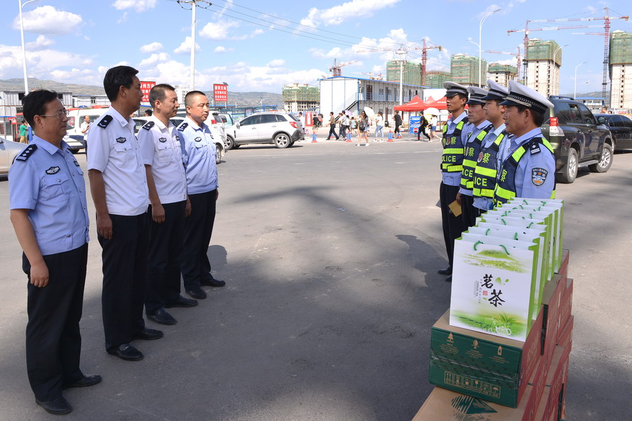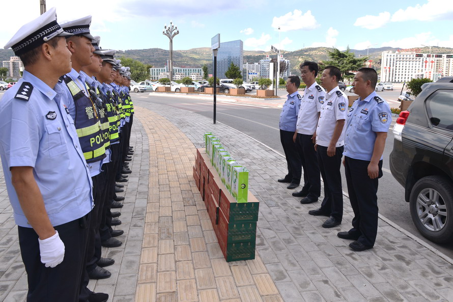 天水市公安局和交警支隊(duì)領(lǐng)導(dǎo)深入基層大隊(duì)勤務(wù)一線,現(xiàn)場(chǎng)檢查各大隊(duì)落實(shí)省公安廳近期下發(fā)的三個(gè)通告精神、整治“六類”重點(diǎn)車輛、開(kāi)展嚴(yán)查嚴(yán)懲嚴(yán)重交通違法專項(xiàng)行動(dòng)等工作情況,詳細(xì)了解勤務(wù)安排和執(zhí)勤民警身體狀況,并為他們送去了飲品、茶葉等防暑降溫慰問(wèn)品。