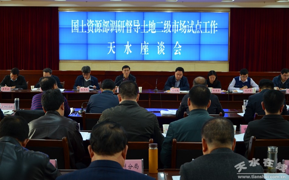 10月20日,國土資源部土地利用管理司副司長郭唐勇率領國土資源部督導組一行來我市,調(diào)研督導國有建設用地使用權(quán)轉(zhuǎn)讓出租抵押二級市場試點工作。省國土資源廳黨組成員、副廳長周文魁,天水市副市長何東一同調(diào)研。