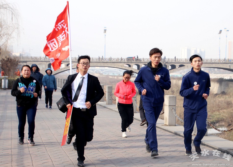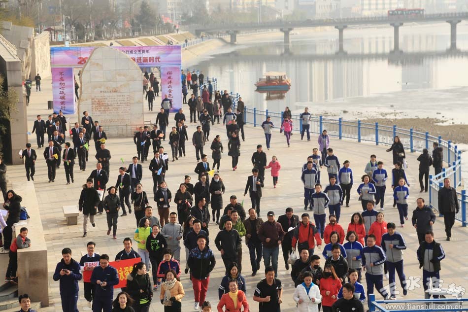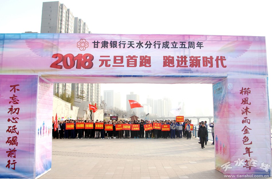 甘肅銀行天水分行自2013年成立以來,在市委、市政府和社會各界的鼎力支持和充分信任下,在全行員工的不懈努力和開拓創(chuàng)新下,甘肅銀行天水分行破繭而生,從無到有,從小到大,截至2017年末,一般性存款余額突破100億元大關(guān),向天水當?shù)赝斗刨J款累計超過180億元,累計向天水五縣兩區(qū)上繳各種稅金1.2億元,向社會公益事業(yè)捐資捐物550多萬元,積極支持了天水地方經(jīng)濟社會轉(zhuǎn)型升級發(fā)展。此次發(fā)起組織“元旦首跑” 活動既是甘肅銀行天水分行積極參與全民健身的具體表現(xiàn),同時也拉開了該行五周年行慶系列活動的序幕。