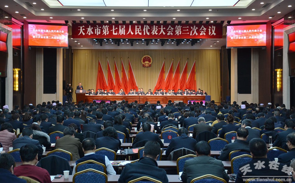 1月6日下午,天水市第七屆人民代表大會第三次會議舉行第二次全體會議。會議聽取了市人大常委會、市中級人民法院、市人民檢察院工作報告,通過了會議選舉辦法和監(jiān)票人名單。