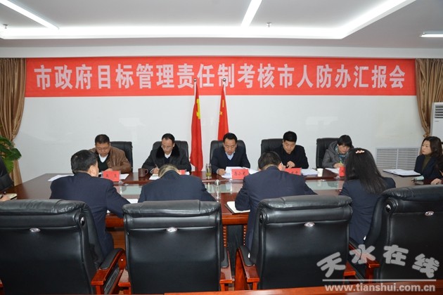 1月10日,天水市政府第一考核組對市人防辦2017年度目標管理任務完成情況進行考核。市人防辦黨組書記、主任馬小龍主持市政府目標管理責任制考核市人防辦匯報會,市人防辦科以上干部參加匯報會。