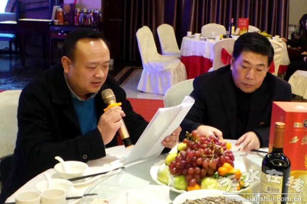 1月27日下午,天水市陜西商會換屆大會暨2018年迎春聯(lián)誼會在天水市萊莉酒店二樓宴會廳舉行。大會順利地完成了換屆事項,產(chǎn)生了新的商會領(lǐng)導班子,天水南山集團董事長楊文明為會長,天水三星公司董事長張友平、天水立德建筑公司董事長李宏偉為執(zhí)行會長。天水金龍石雕廠廠長鮑亞波等十四人為常務會長、副會長。會議由執(zhí)行會長李宏偉主持。