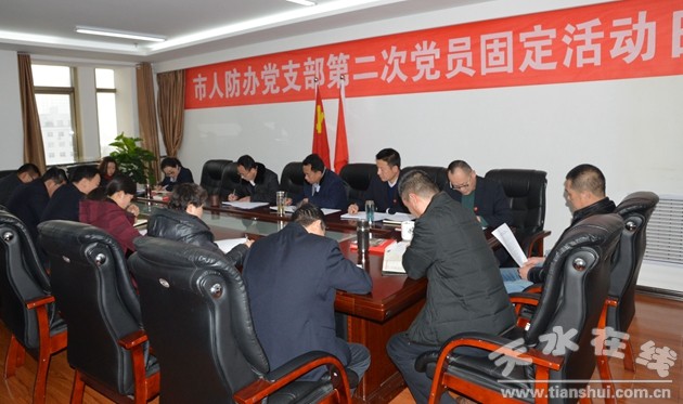 2月2日上午,市人防辦黨支部組織全體黨員開展了2018年度第二次“黨員固定活動日”,市人防辦黨組成員、副主任、黨支部書記蔡向增主持活動,市人防辦黨組書記、主任馬小龍參加活動。