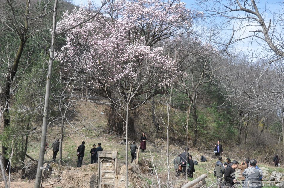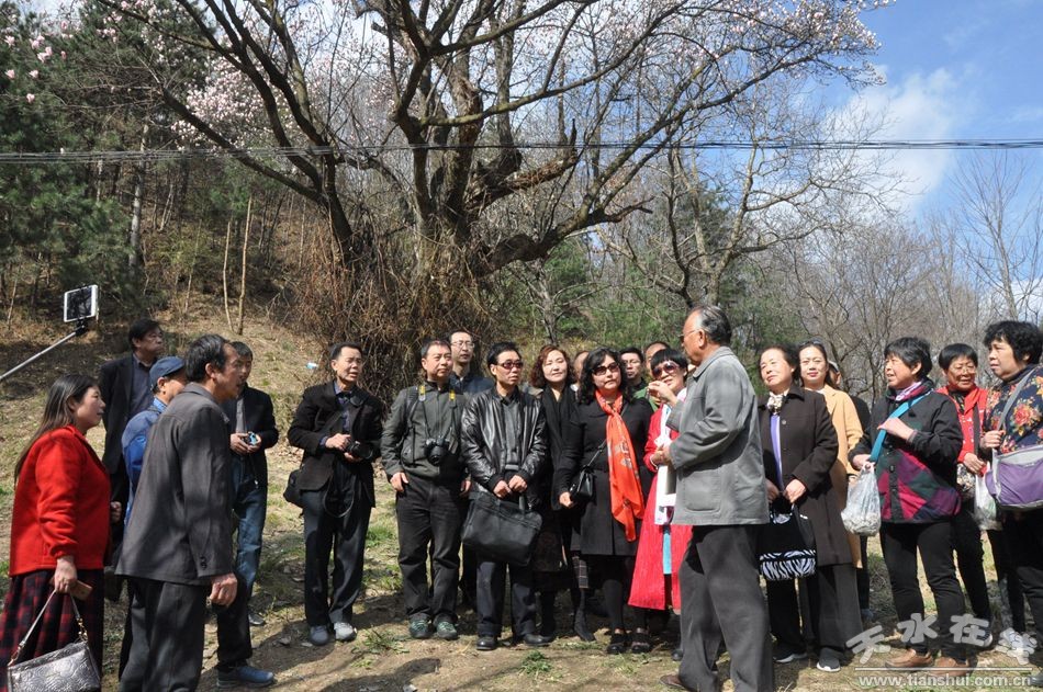在千年紫玉蘭樹下,李子偉先生從天水玉蘭樹的種植歷史,講到如何利用玉蘭花為天水文化旅游增添光彩,讓大家很受啟發(fā)。大家紛紛圍繞紫玉蘭樹拍照留念,或探尋創(chuàng)作靈感。隨后大家又驅(qū)車來到了甘泉鎮(zhèn)太平寺雙玉蘭堂,對(duì)這里的玉蘭樹和玉蘭文化進(jìn)行了再次考察。